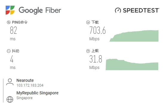 (2)、我跑了下谷歌的fiber测速,也是用的speedtest的服务